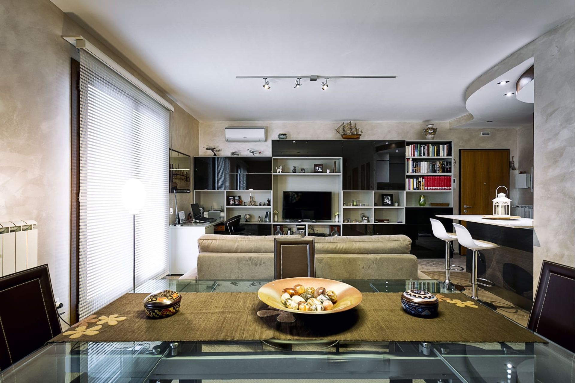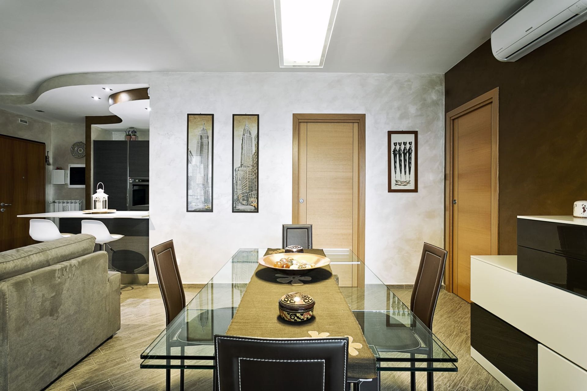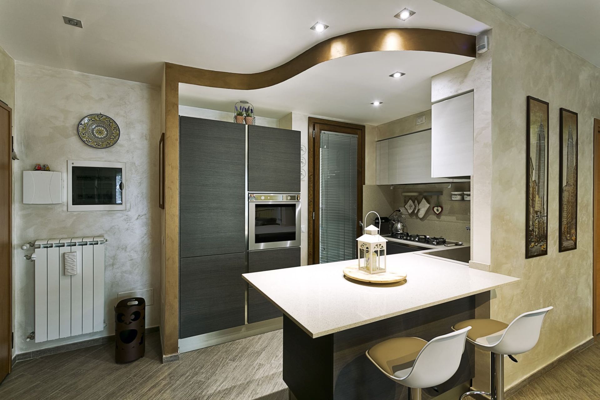 La richiesta principale dei nostri clienti è stata quella di razionalizzare gli spazi, aumentandone la funzionalità e l’armonia: il progetto ha, dunque, rimodellato il grande soggiorno con angolo cottura, al cui interno è stato realizzato il punto cucina. Identiche linee guida hanno diretto l’intervento eseguito per la zona notte.